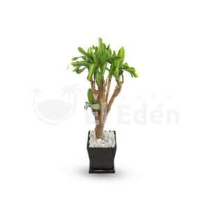 El ficus varegado, o Ficus elastica ‘Variegata’, es una variedad ornamental apreciada por sus hojas grandes y brillantes, que presentan un hermoso patrón de colores verde y crema. Es ideal para interiores, ya que se adapta bien a la luz indirecta y ayuda a purificar el aire.